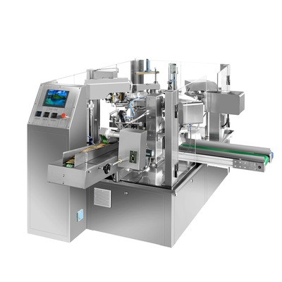其适用范围极其广泛,可用于纸塑复合、塑塑复合、铝塑复合、PE复合等,包材损耗低,使用的是预制好的包装袋,包装袋图案完美,封口品质好,从而提高了产品档次;还可以一机多用,只需根据不同的物料配套不同的计量装置能实现颗粒、粉末、块状、液体、软罐头、玩具、五金件等产品的全自动包装。