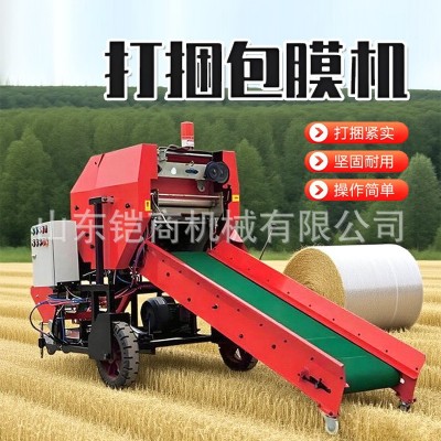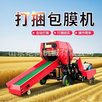 青储打包机农场秸秆粉碎草料打捆包膜机全自动青贮打捆包膜一体机