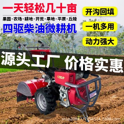 宜天马科普四驱微型微耕机农用柴油旋耕机除草开沟刨翻地松土犁地