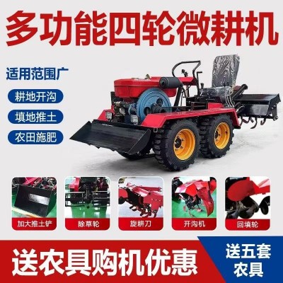 新款乘坐式四轮旋耕机多功能微耕机大棚果园山地丘陵水田耕地