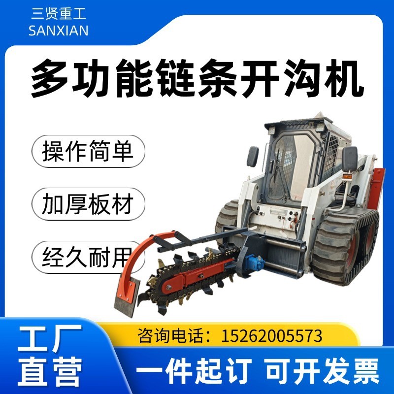 三贤厂家优惠开沟挖渠的好帮手滑移机加装多功能挖沟机,操作简单