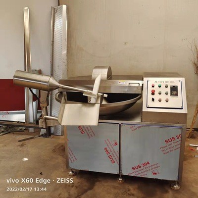 斩拌机是肉类制品、肉糜状产品(火腿肠、烤肠、蒜味肠、水饺、水产加工等)生产制作过程中的一个关键设备。它不仅能够将肉块、碎肉、脂肪等主要原材料精细的切碎,还能同时将其它原料如水、冰屑、调料、附加品同肉沫一起搅拌成均匀的乳状物。根据不同的要求选择适当的转速,可以大大缩短运行时间,减少物料发热量,可以保持馅料的天然色泽和风味。