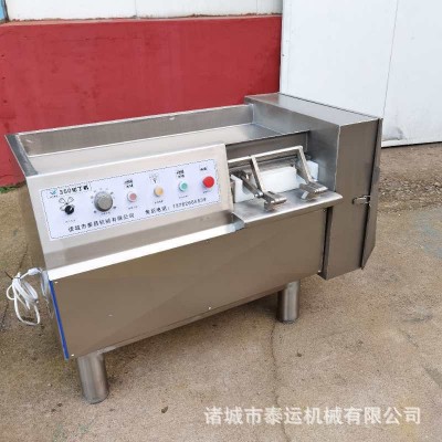 切丁机是肉类制品生产制作工艺中的一个重要设备。将肉块,脂肪等主要原料,切割成用户所需要的肉丁,调整刀栅的尺寸可切出肉丝,肉片,肉丁。肉丁尺寸的大小由刀栅中刀片数量来决定。本公司生产的350和550型切丁机适用于大,中,小型肉类食品加工厂,也可以根据客户提出的要求,定制生产特殊工艺要求的产品。