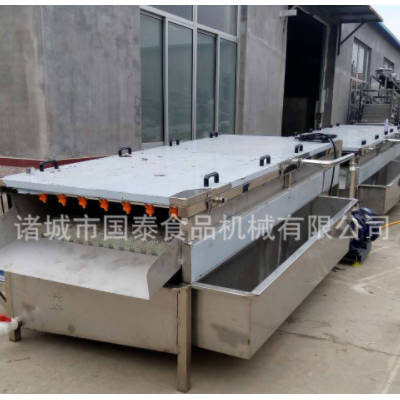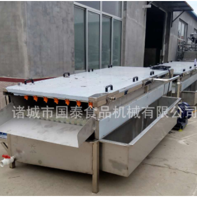 山药毛辊清洗去杂机采用SUS304不锈钢制做,设备上部有高压喷淋对果蔬表面进行冲洗可有效的洗去表面粘有的泥沙、中间有毛辊,通过毛辊的转动带动果蔬的前进,并对物料的表面进行刷洗可深层清洗果蔬表面粘连的不易冲洗的杂物,毛辊采用双层毛刷可以将表面的毛发和纤维物的清除。经毛辊清洗去杂机去除毛发及纤维杂物后,提高了果蔬的洁净率。下部可进行水收集使之能循环利用,节约了成本。