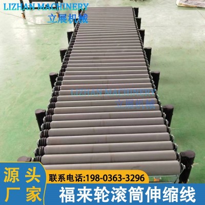 福来轮滚筒伸缩输送机托盘输送线伸缩式动力滚筒输送线箱包流水线