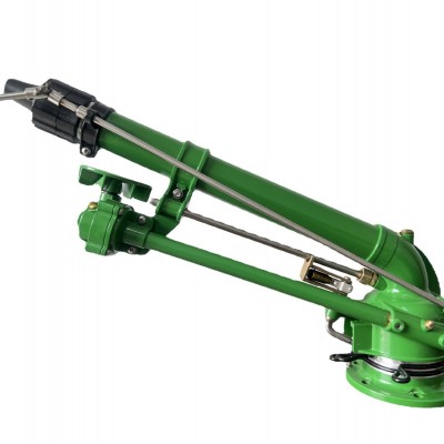 推广节水灌溉技术是解决农业缺水,保证粮食稳定高产的主要途径之一,目前已经成为世界缺水国家发展农业的一项重要举措。FSN50ADJ型洒水喷枪可用于大、中型卷盘式喷灌机,也可配套大型指针式喷灌机尾枪使用。大面积灌溉工程、堆料场喷水除尘、体育场浇灌,电厂、港口、码头、铁路货场、煤焦化工厂等工业企业降尘等领域,可有效降尘、除尘,大幅度降低PM2.5。本产品配有多种不同口径的喷嘴,可实现流量从17.8m³/h--75m³/h,工作压力0.2MPa—0.7Mpa,射程26m—53m,适用于不同土壤、地势、作物及环境需求。