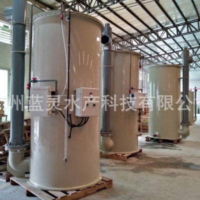 纯氧向水中溶解的过程中,会有一部分的氨氮和二氧化碳从水中析出。那么这个设备其实对水体的氨氮和二氧化碳的去除有一定的作用。二氧化碳从水中析出,会导致养殖水体的酸碱度、硬度等指标发生一定的变化。二氧化碳在水中的溶解度越低,对水生动物的生长就越有利。同时可以防止高密度循环水养殖长期运行以后水体酸化。纯氧溶氧器在运行一段时间后,设备内部就会积累大量的二氧化碳、氨、水蒸汽等气体。我们可以通过手动设置,定期将这些废气排出。