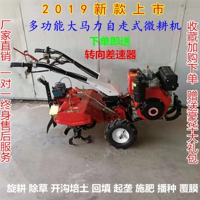 四驱微耕机小型汽柴油多功能自走旋耕松土犁地耕田翻土开沟农用机