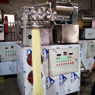 米粉、米线是一种传统米制品,根据各种形状、各个地域和各种不同的做法可分为:桂林米粉、云南米线等不同的叫法,统称米粉或米线。米粉是指以大米为主要原料经浸泡、磨浆、挤压自熟、成型老化等工序制成的。米粉质地柔韧,富有弹性,水煮不稠汤,干炒不易断,配以各种内类、青菜(绿色植物)或汤料进行汤煮或干炒,爽滑入味,深受广大消费者(尤其南方消费者)的喜爱。米粉品种众多,可分为排米粉、方块米粉、波纹米粉、直条米粉、银丝米粉、湿米粉、干米粉等。鸿睿多功能米线机是我单位科研人员,以市场为,自主开发研制而成。
