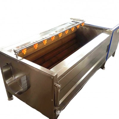 工作原理:当原料放入该机后,毛刷辊旋转刷洗原料并使其不断翻转,同时水管不断的喷淋,把从原料上刷洗下来的污物冲洗掉,直到洗净为止。