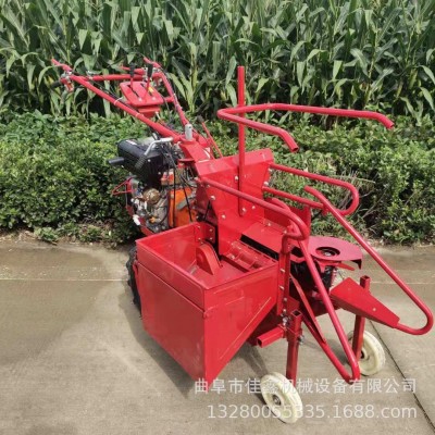 手扶车带玉米收获机是本公司新研发的小型玉米收获机。该机可与12马力以上手扶车配套使用。能一次性完成摘穗、集堆和茎秆粉碎还田等多项作业。一次完成一行的玉米摘穗和秸秆粉碎功能。配套有集穗斗满了可以自动卸载,留茬高低可调,张紧离合器工作安全,转弯半径小好操作。该机每小时收货玉米一到两亩地秸秆直接粉碎,扒皮干净,穗位高度60厘米以上就可以收割,秸秆越高光棒率越大。