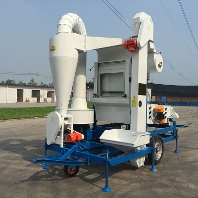 该机的风选功能主要是靠立式空气筛来完成,它根据种子的空气动力学特性,按照种子和杂质临界速度的不同,通过调整气流的速度,实现分离的目的,较轻的杂质被吸入沉降室集中排出,较好的种子通过空气筛后进入振动筛。振动筛的分选原理是按照种子的几何尺寸特性确定的,种子的种类和品种不同,各尺寸也有所不同,选择更换不同规格的筛片,就能满足分选的要求。
