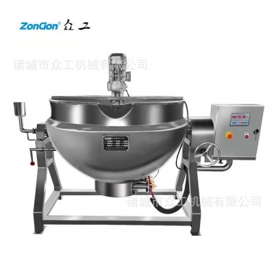 不锈钢可倾斜式夹层锅 全自动蒸汽电加热夹层锅 辣椒酱搅拌炒锅