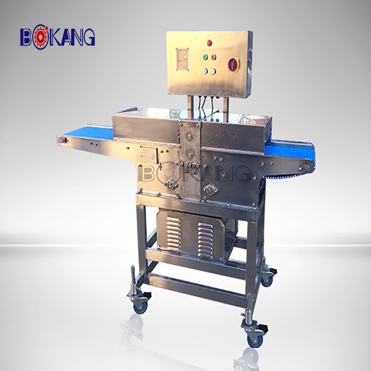 无骨鸡柳条、雪花鸡柳切条机 切片切条任意组合设备通过多组圆盘刀将肉均匀切割成条状、块状,适用于猪牛肉等畜肉、禽肉等新鲜或冷冻原料分切加工。可与分切机对接成产出尺寸一样的条形产品或块状产品。