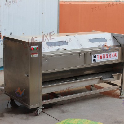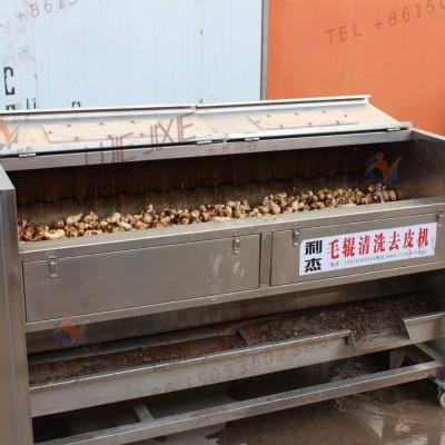 利杰牌毛刷清洗脱皮机主要由电机、变速器、9支毛棍等组成,有1000型1200型,1500型,1800等多种型号,是我们厂吸取了国内外对根薯类加工机械的特点设计制造的,采用毛刷原理,广泛适用于圆形,椭圆形果蔬比如生姜、胡萝卜、山芋、马铃薯、红薯、猕猴桃等根薯类蔬菜的清洗、脱皮。该机具有外形美观和操作方便,清洗脱皮容积大、效率高,耗能小,可连续清洗,操作简单,使用寿命长等特点,刷辊材料经特殊工艺处理(采用尼龙线绳轧制而成),经久耐用,耐磨性能好。箱体采用优质不锈钢材质,不锈蚀、清洁卫生。可根据客户要求定制。