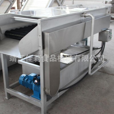 该设备适用于球形或长条圆形的果蔬清洗。果蔬原料在毛刷旋转的推动下向前移动,洗净度高。