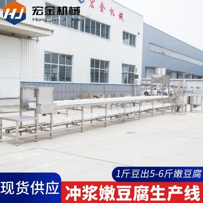 板式冲浆嫩豆腐生产线宏金现货创业豆腐坊专用全套大型冲浆豆腐机