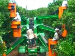 老外实拍超强水果采摘农机,机器三头六臂能装一堆工人,网友:效率太高了